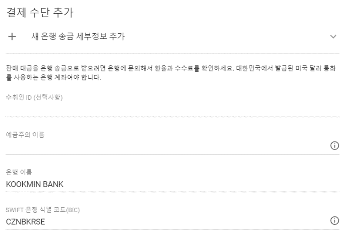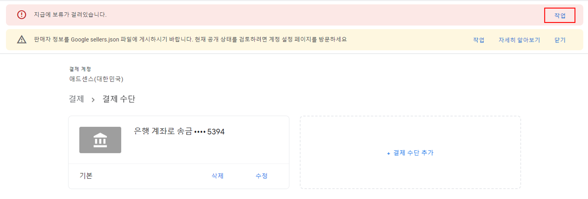 Google Adsense 홈페이지에서 [지급] - [결제정보] 를 클릭 후 새로운 결제를 추가합니다!